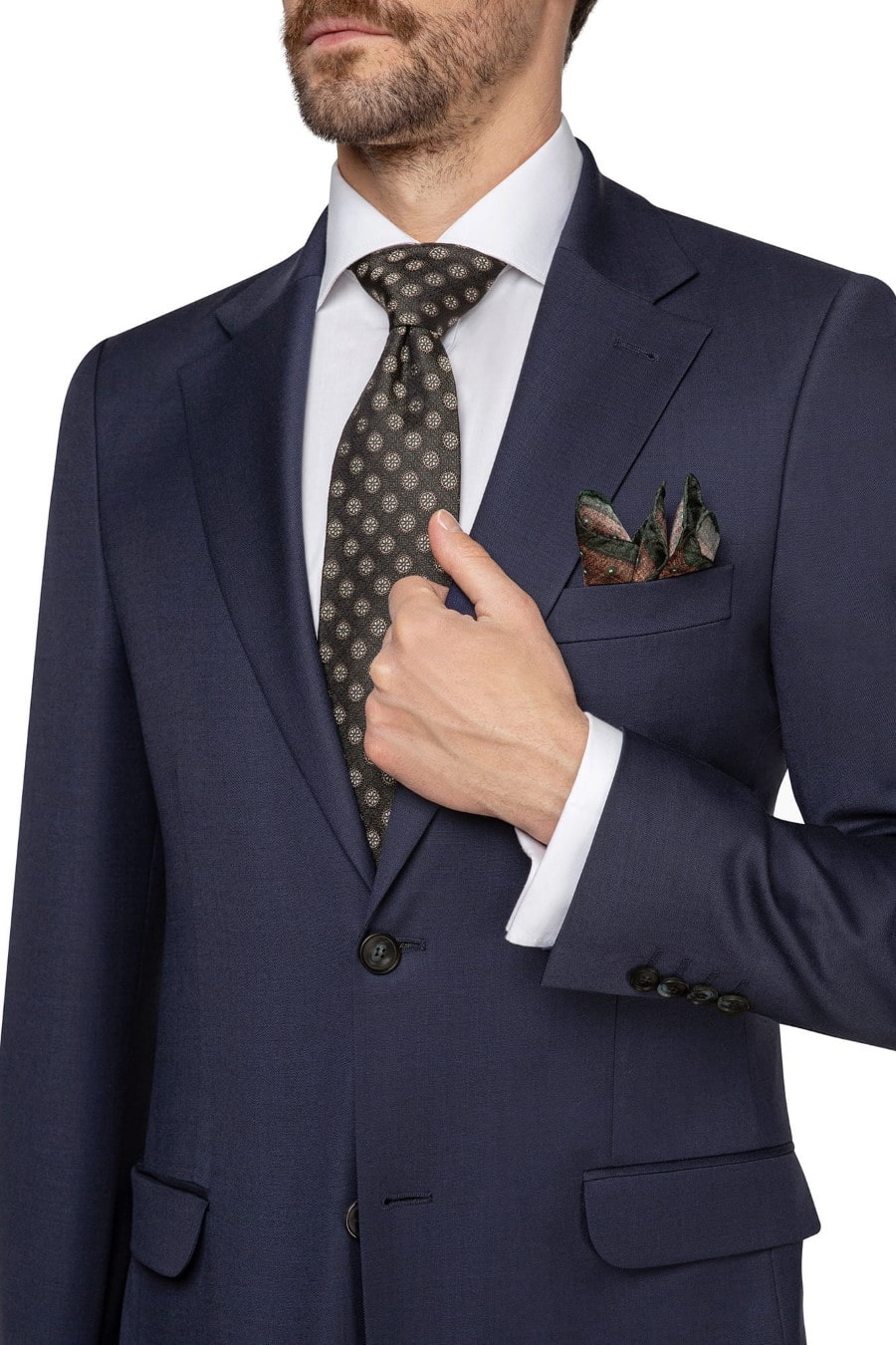Garnitur Waszyngton to klasyka w unowocześnionej formie. Głęboki granatowy odcień czyni ten komplet doskonałym wyborem na różnorodne okazje – od formalnych po półformalne. Marynarka z pełną podszewką, udekorowaną unikalnym wzorem, wnosi element elegancji i finezji. Spodnie z tradycyjnym kantem idealnie dopełniają zestaw, zapewniając spójny i profesjonalny wygląd.
